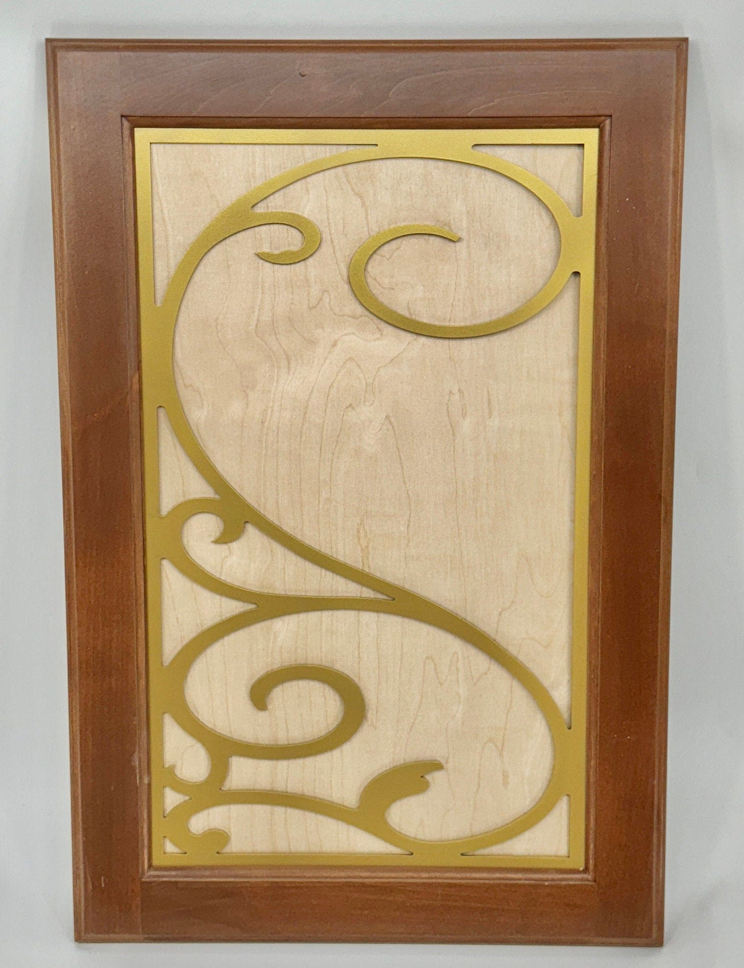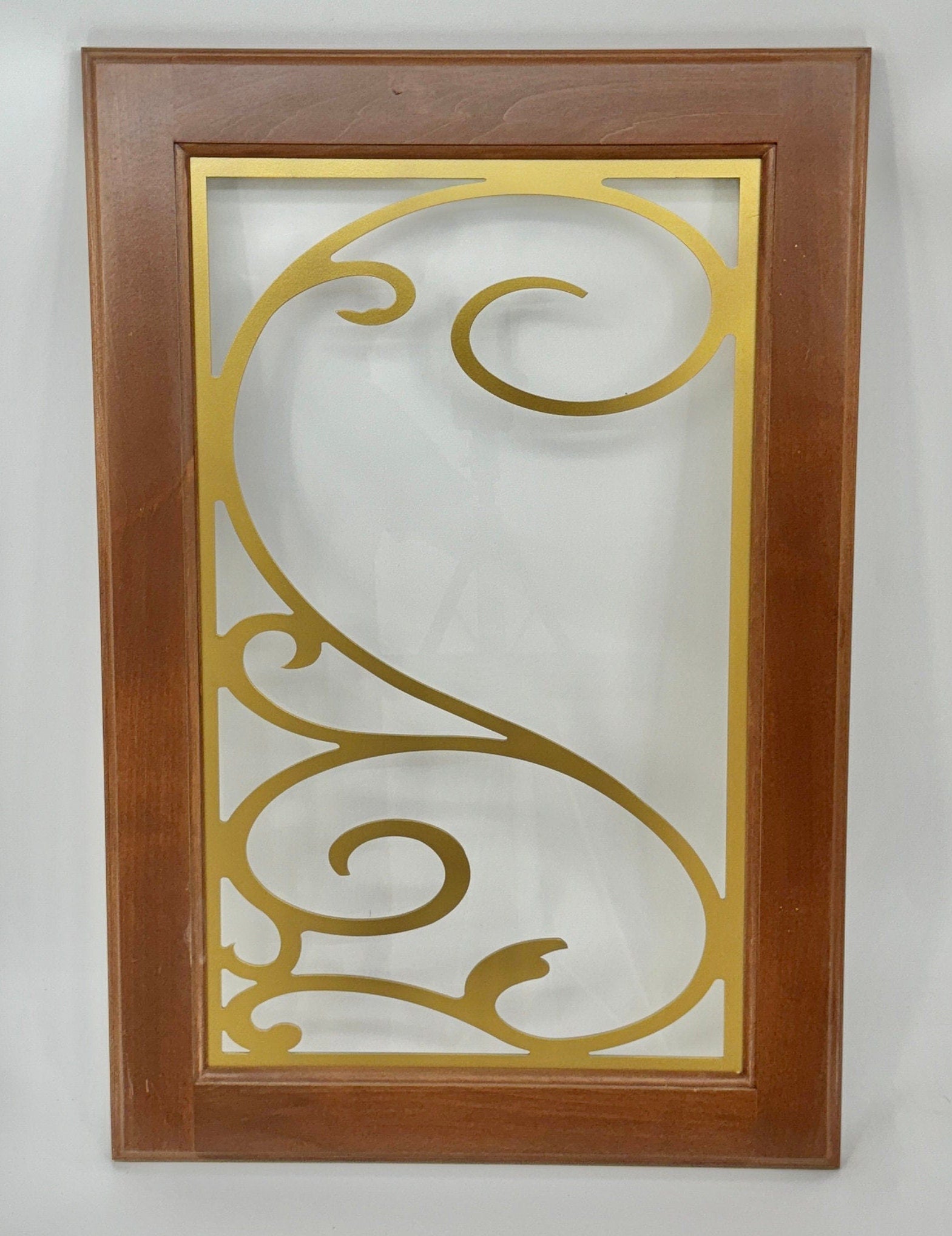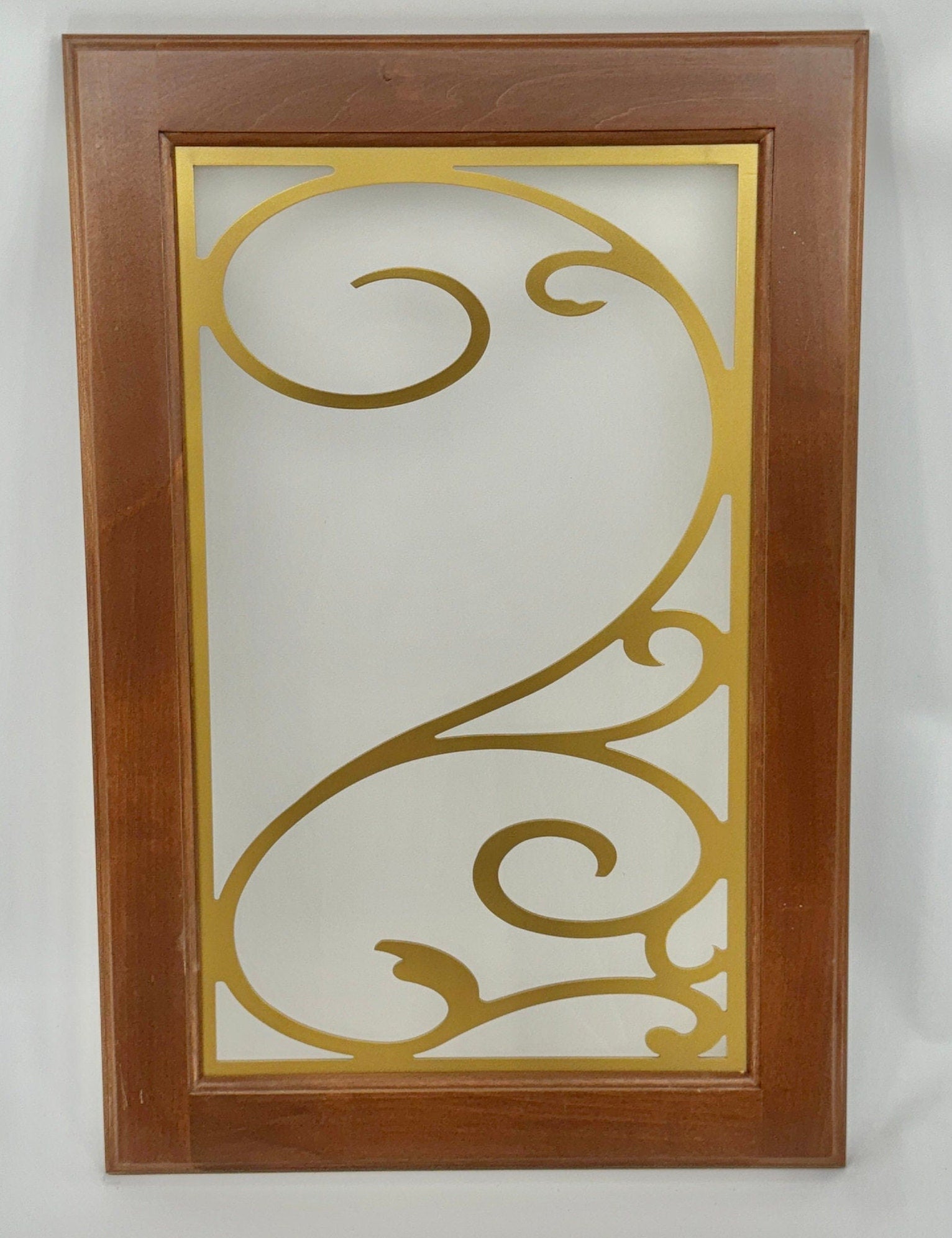 Listing is for a metal insert your custom size x .134” thick. Choose any design in any width & height in per sq inch pricing. You can order a mini insert sample (6”w X 10”h X .134” thick) of any design which allows for a sample of any design at low cost. Stained glass look, called colorcast also an available option on all designs. Six standard colors-See product photo with finishes. Attachment/hanging holes available at no added cost. Made in Grantville, Ga, our products can be utilized for cabinetry doors and/or cabinetry end panels and/or cabinetry backs, house doors, garage doors, garden gates, furniture doors, wall art, fence panels, wine storage, balcony/stair railing panels, windows, art niches, decorative accents, pass-throughs, screen doors, transoms, and wall art.