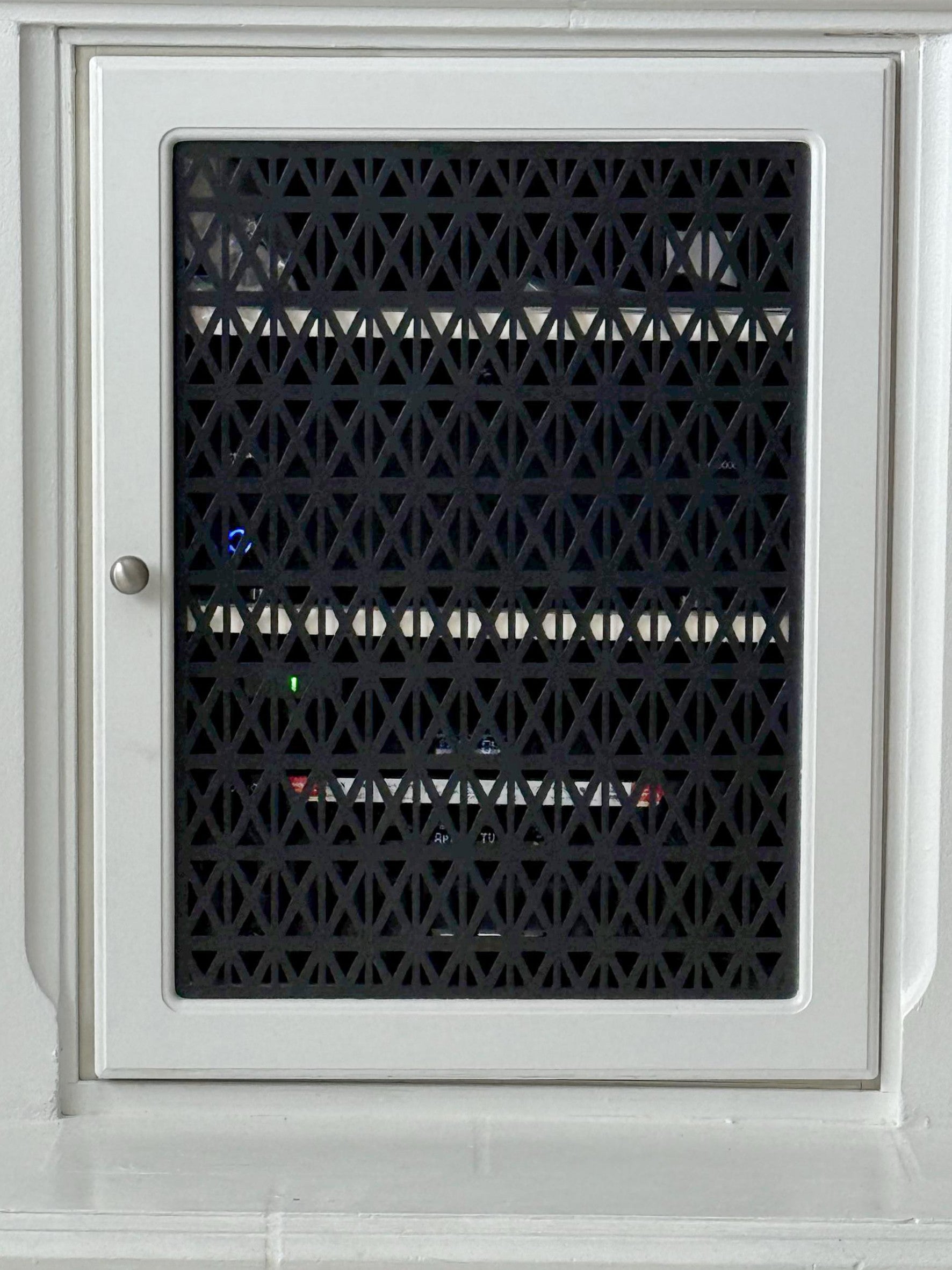 The seller made a custom cabinet insert which we used to ventilate the space for hidden wi-fi. The metal piece is very sturdy and nice. It looks exactly as mocked up. The owner Neal has ideal communication. Do not hesitate to contact them for custom work!